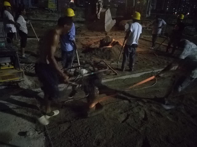 晚上工人們還在加班加點的趕工,把因為下雨延誤的工期給趕回來。在雨天搶工期間,項目部領(lǐng)導班子與員工共同奮戰(zhàn)在生產(chǎn)一線,全體員工堅守崗位,工作井然有序,以此確保平泰豐花園學校項目一期于2018年5月底順利移交